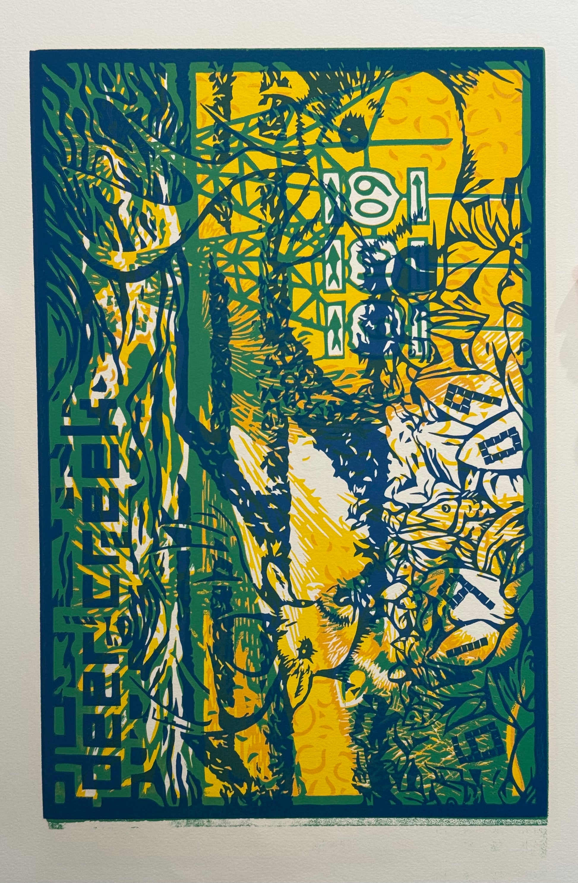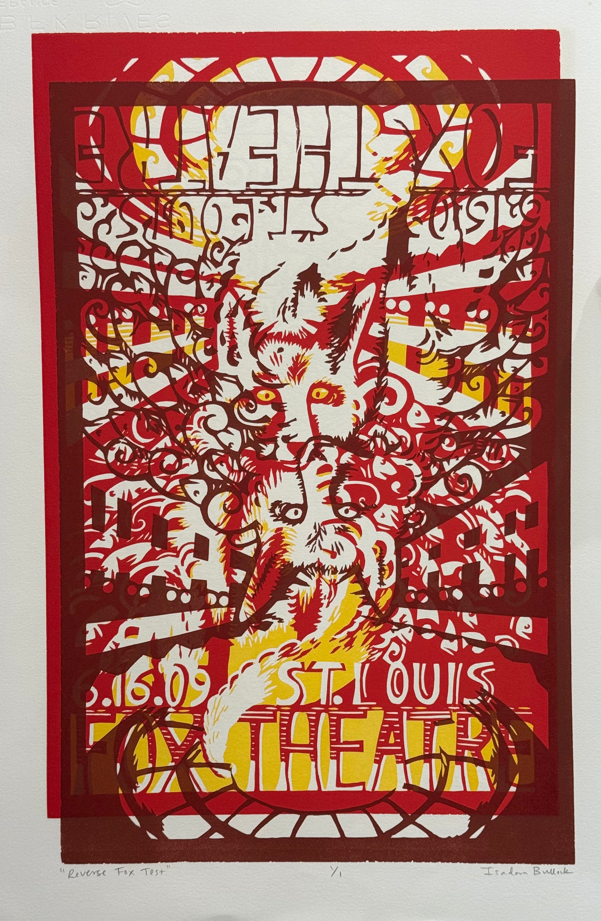This is a test print from 2009 featuring multiple layers of different prints on both sides.